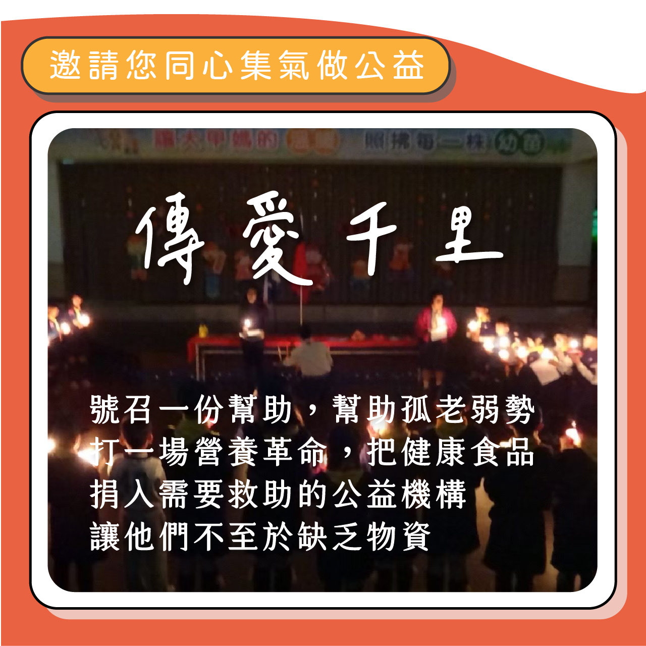邀請您和我們一起傳遞愛心,信仰化為行動,讓善走進人間