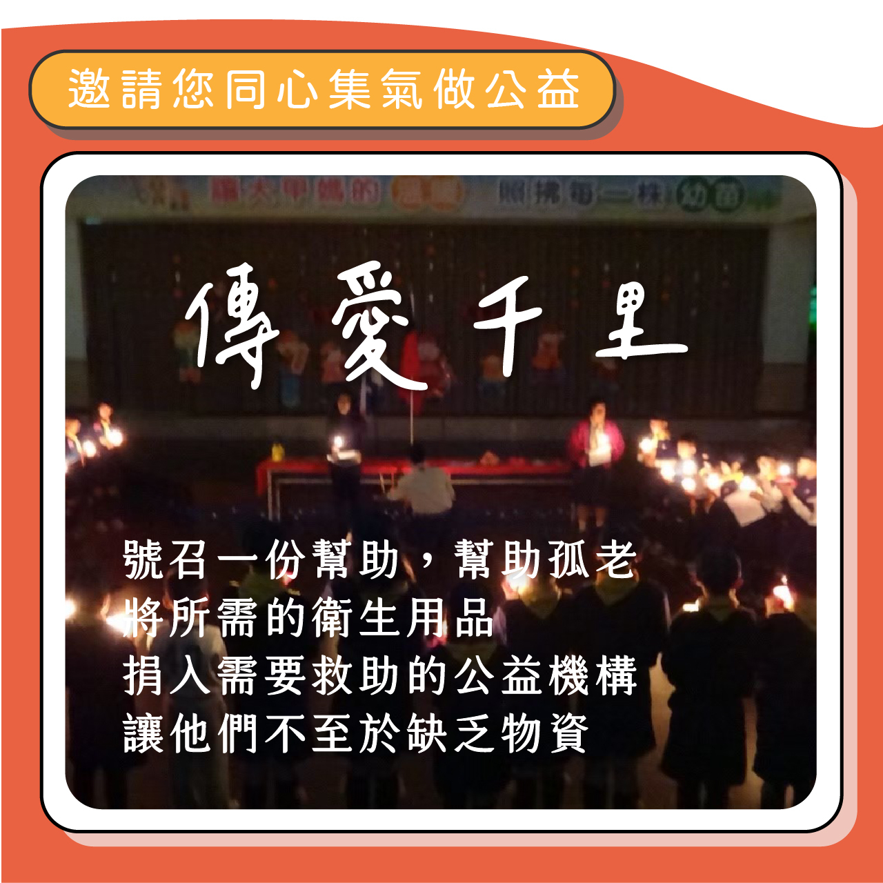 邀請您和我們一起傳遞愛心,信仰化為行動,讓善走進人間